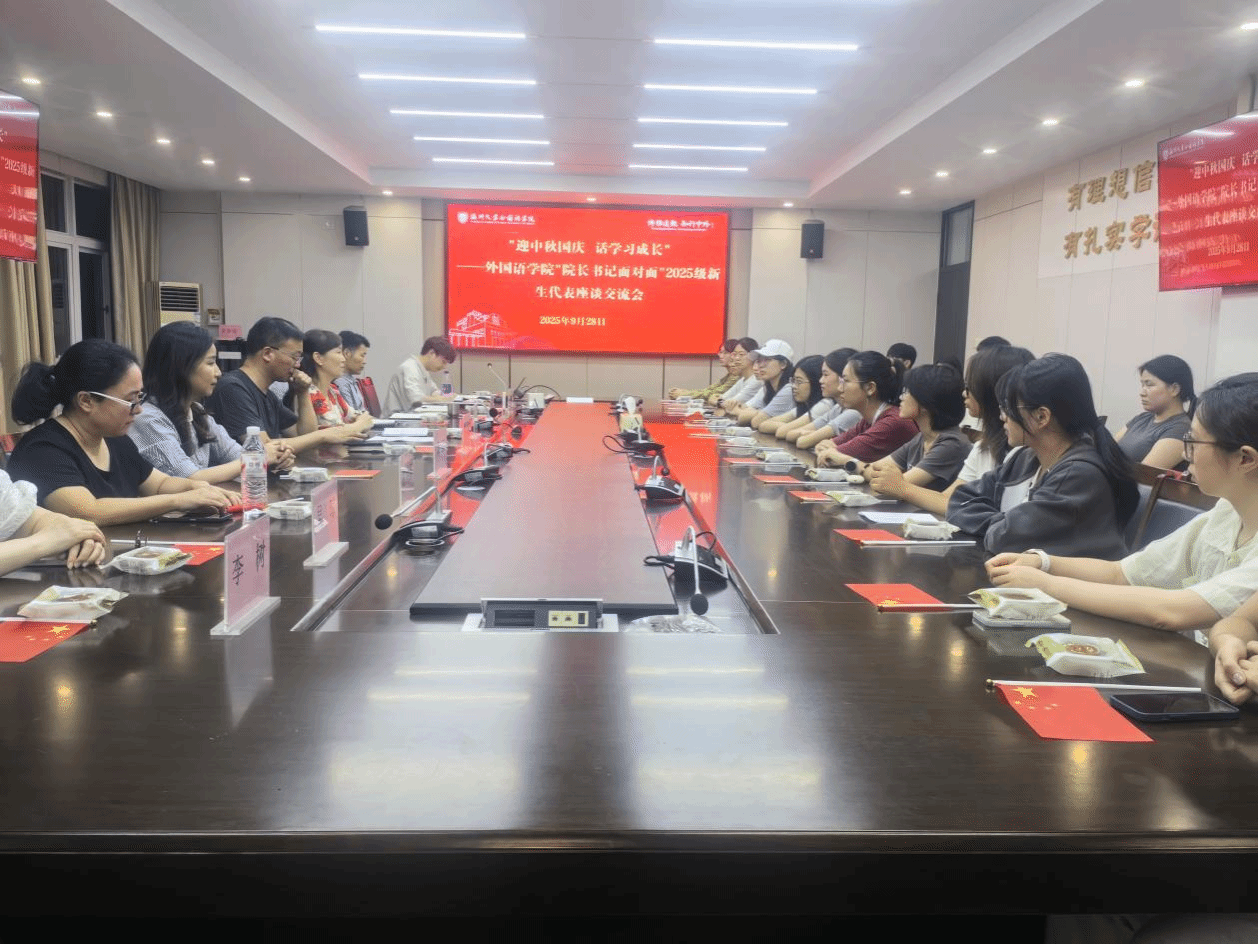 中秋月圆、家国同庆、温情满溢。9月28日晚,在国庆中秋双节来临之际,永利65335com在外语楼212会议室举办“迎中秋国庆 话学习成长”——“经理书记面对面”2025级新生代表座谈交流专场活动。公司党委书记杨丽君、副经理陈勇、副经理何永成、副书记陈志勇、学术副经理章辞、新生班主任李开、沈诗颖、李旭、吴琼、李树等老师以及公司辅导员,与26名本研新生代表围坐一堂,共迎佳节,畅谈学习和未来。