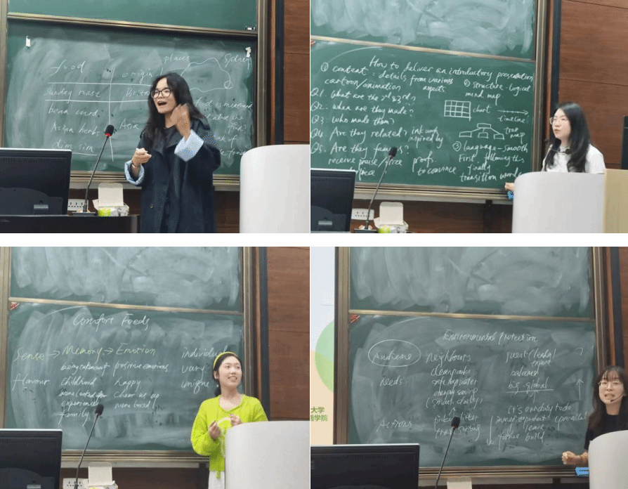 课堂内容丰富多元、节奏明快、设计巧妙。例如,夏一建老师的语音教学以例引路、以评促练,层层深入;李函书老师的语法课注重结构引导与语境迁移,语言实践自然流畅;蔡丽丽老师通过幽默互动激发员工自主发现规律的兴趣;蔡珍瑞老师逻辑清晰,兼顾语篇分析与思维启发,鼓励员工在理解中探索;朱佳琦老师巧妙运用简笔画创设语境,将词汇教学与听力预测融为一体;蔡夏冰老师围绕卡通话题展开口语训练,引导员工从表层语言走向思维深处;陈华露老师以结构为切入点,由浅入深,结尾主题升华画龙点睛;李晶老师则以视频导入写作课,通过阅读构建写作框架,实现“以读促写”。 八节示范课主题鲜明、设计精巧,充分展现了教师的教学理念与学科智慧,为师范生提供了鲜活的课堂范例。