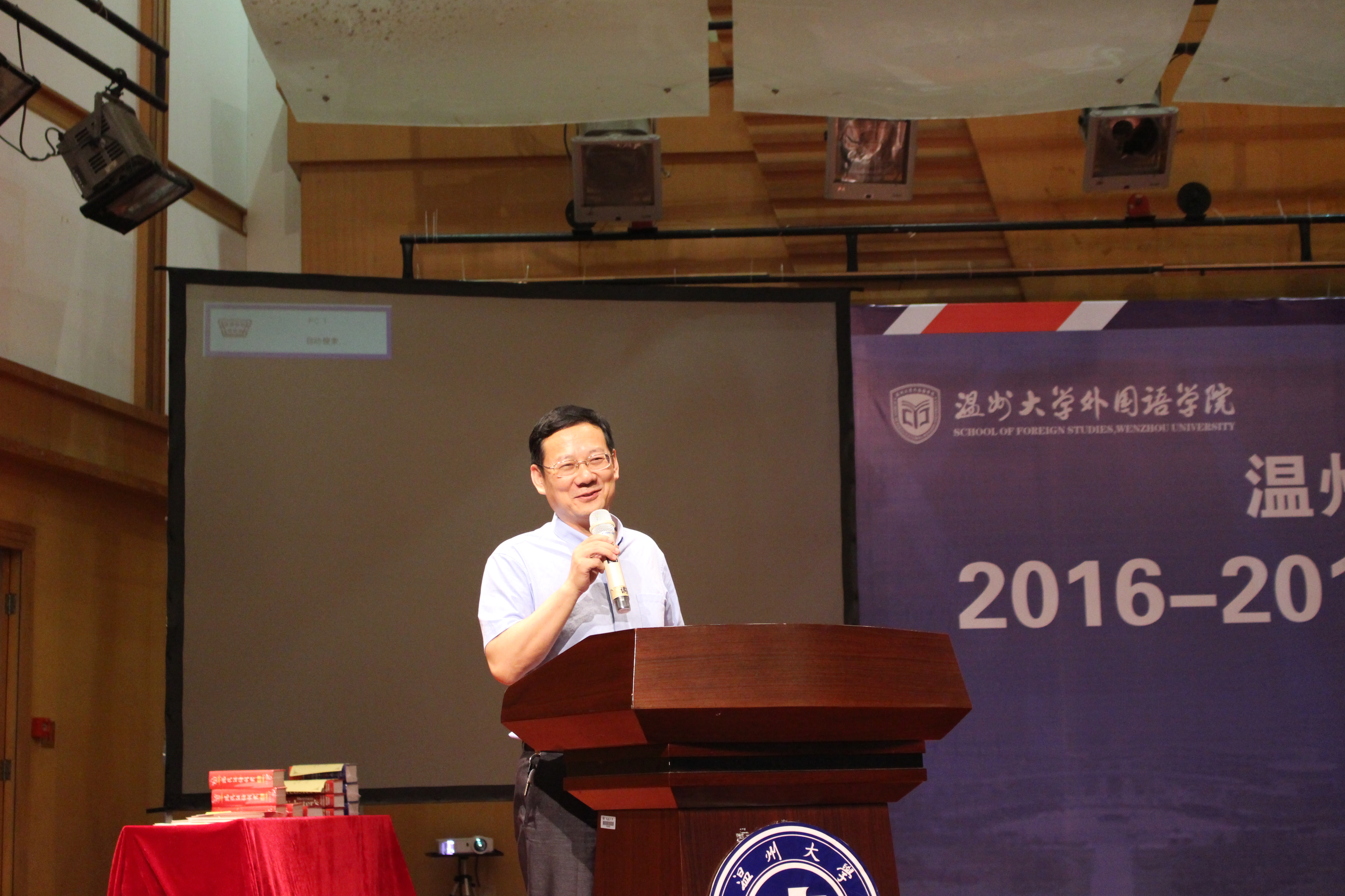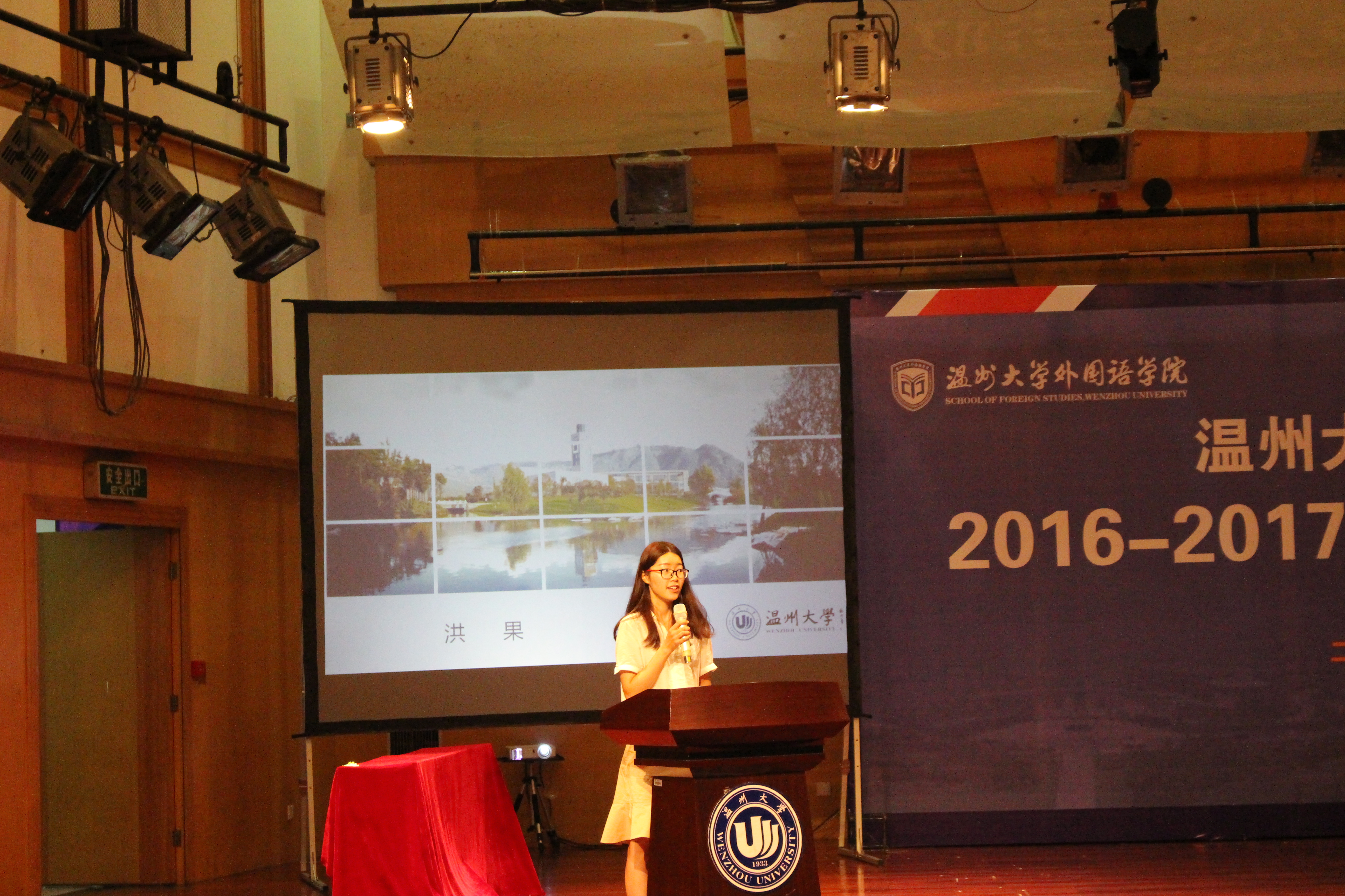晚上6:00,本次表彰大会正式开始。首先,由16级翻译班的同学献上一首热情洋溢的歌曲,点燃现场的气氛。接着,毛经理上台致辞。他以四个"A"总结了这一年来永利65335com同学的学习所得并表达了对同学们的美好祝愿,希望同学们能够在未来取得更大的进步。随后,陈孟森书记公布2016-2017年国家奖学金、省政府奖学金等十六项奖项获奖人员名单,获奖人员依次上台领奖,全场气氛活跃,掌声此起彼伏。各项奖项颁奖结束后,李新德老师上台分享自己过去二十年的阅读心得。他提到学习既要注重课堂学习,更要注重在图书馆的自我学习。李新徳老师以自己多年来的亲身经历教导同学们必须养成常驻图书馆、常阅书籍的好习惯。此外,他还强调了在阅读过程中培养批判性思维能力的重要性。金力学长以努力这一关键词切入,指出了平台与自我学习之间相辅相成的内在关系,并与同学们分享了丰富的学习资源及如何取得专八优秀成绩的经验。最后,留学美国的14届员工洪果分享了在国外留学的经历。她主要介绍了在美国的业余生活、课内学习方式。通过在美国的学习体验,她提到有效的课外学习与课堂参与度有助于提高获取知识、提高能力。她亲切幽默的态度、充实有趣的讲话内容引得同学们笑声连连、掌声阵阵。