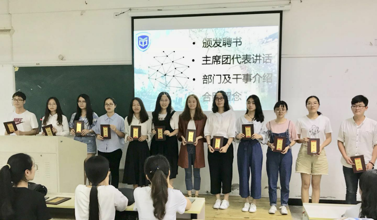 首先,主席团各成员依次领取聘书,并合影留念。随后,由主席们为员工会各部门新任部长们颁发聘书,以此鼓励部长们能在接下来的一年中责无旁贷、尽职尽责,在各自的部门中以身作则,积极引导干事们认真工作。接着,主席团代表黄舒怡同学进行发言。黄舒怡同学用真挚的语言表达了对员工会新成员的欢迎和对各位部长在上一个学年所付出的辛勤努力的衷心感谢,而且以自身经历就“为什么要加入员工会”和“为什么要加入现在所在的部门”两个问题,为新干事们指点迷津。除此之外,她表示在工作中犯错并不可怕,重要的是事后的反省与改正,让新干事们受益匪浅。紧接着,进入部门成员自我介绍环节。各部门依次发言,各位小干事不仅抒发了对未来一年的美好憧憬,表达了认真工作的决心,展现了新生应有的积极面貌。在这之后,纪检部部长贾雨梦同学、青协部部长陈佳欣同学向全体成员阐述了办公室值班及打扫制度,志愿者活动和手机入袋等一些事项。在本次会议的最后,全体成员留下了具有纪念意义的第一次大合照。