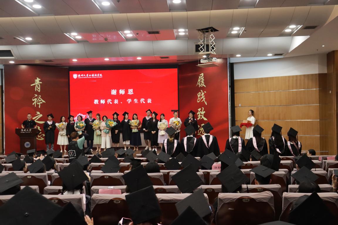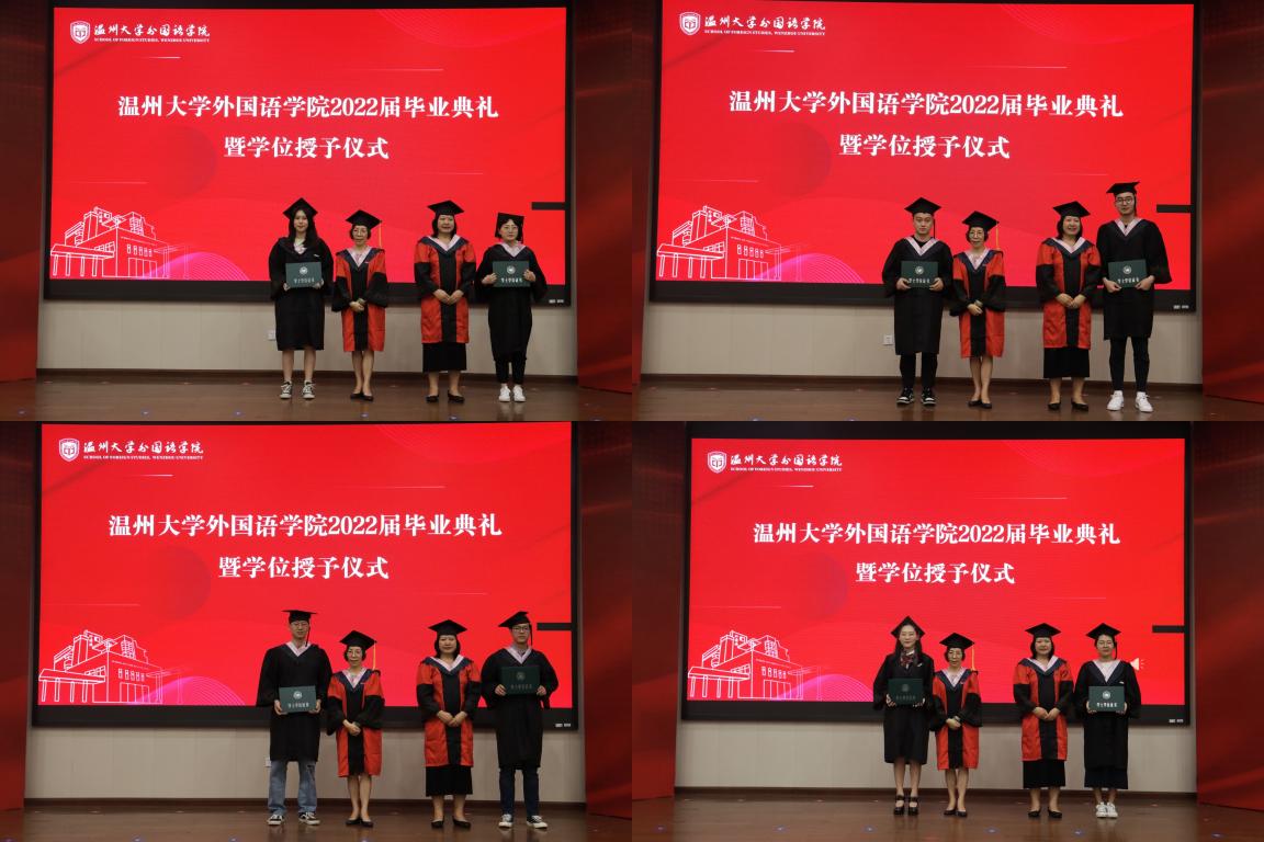 叶苗经理宣读学位授予决定以及毕业生名单。叶苗经理与杨红副经理为2022届毕业生拨穗正冠,并进行合影留念。