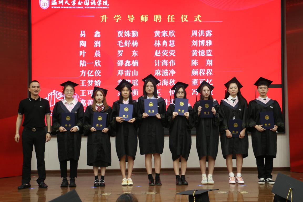 随后外国语公司副书记陈勃为升学同学颁发升学导师聘书。