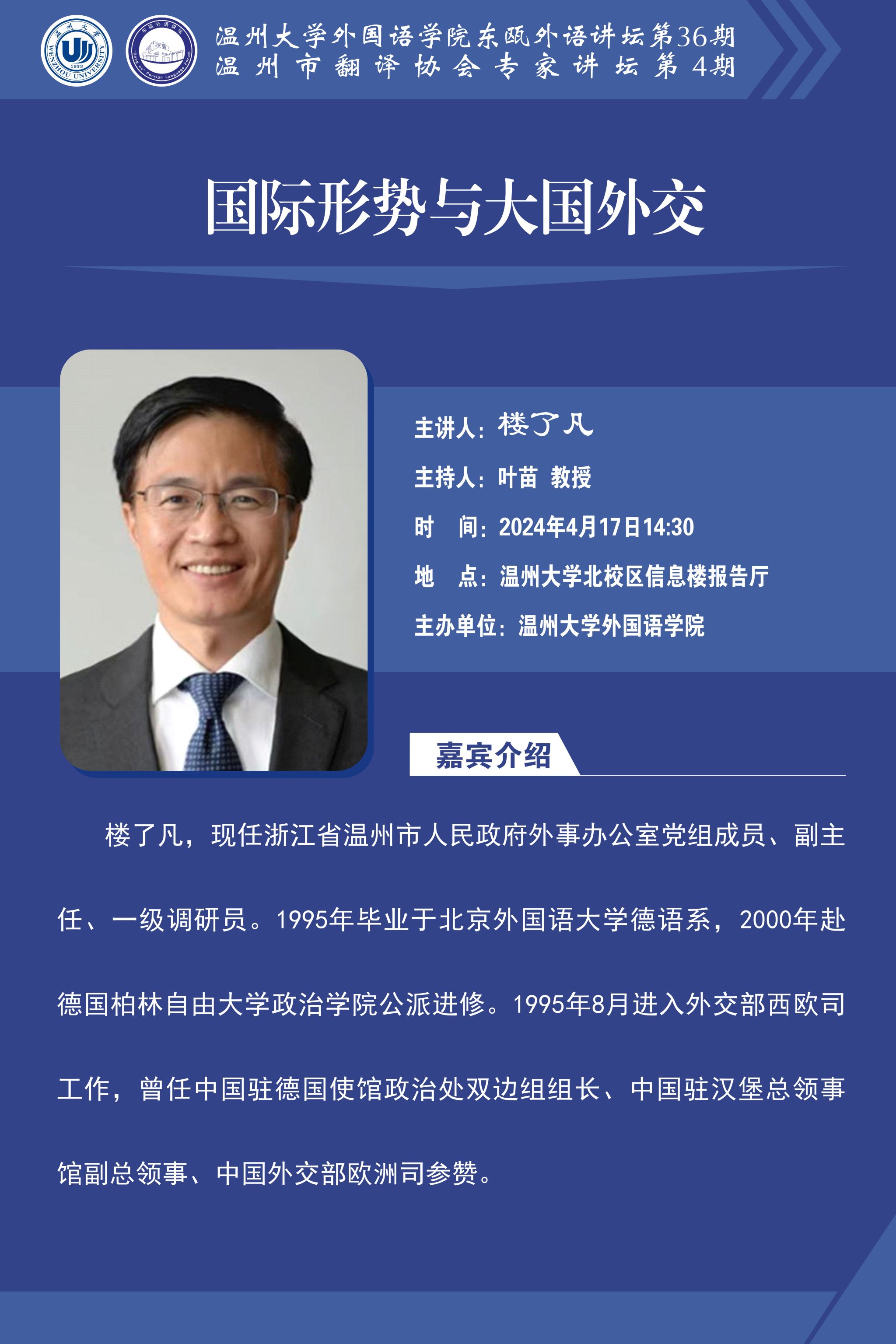 东瓯外语讲坛第36期预告:国际形势与大国外交