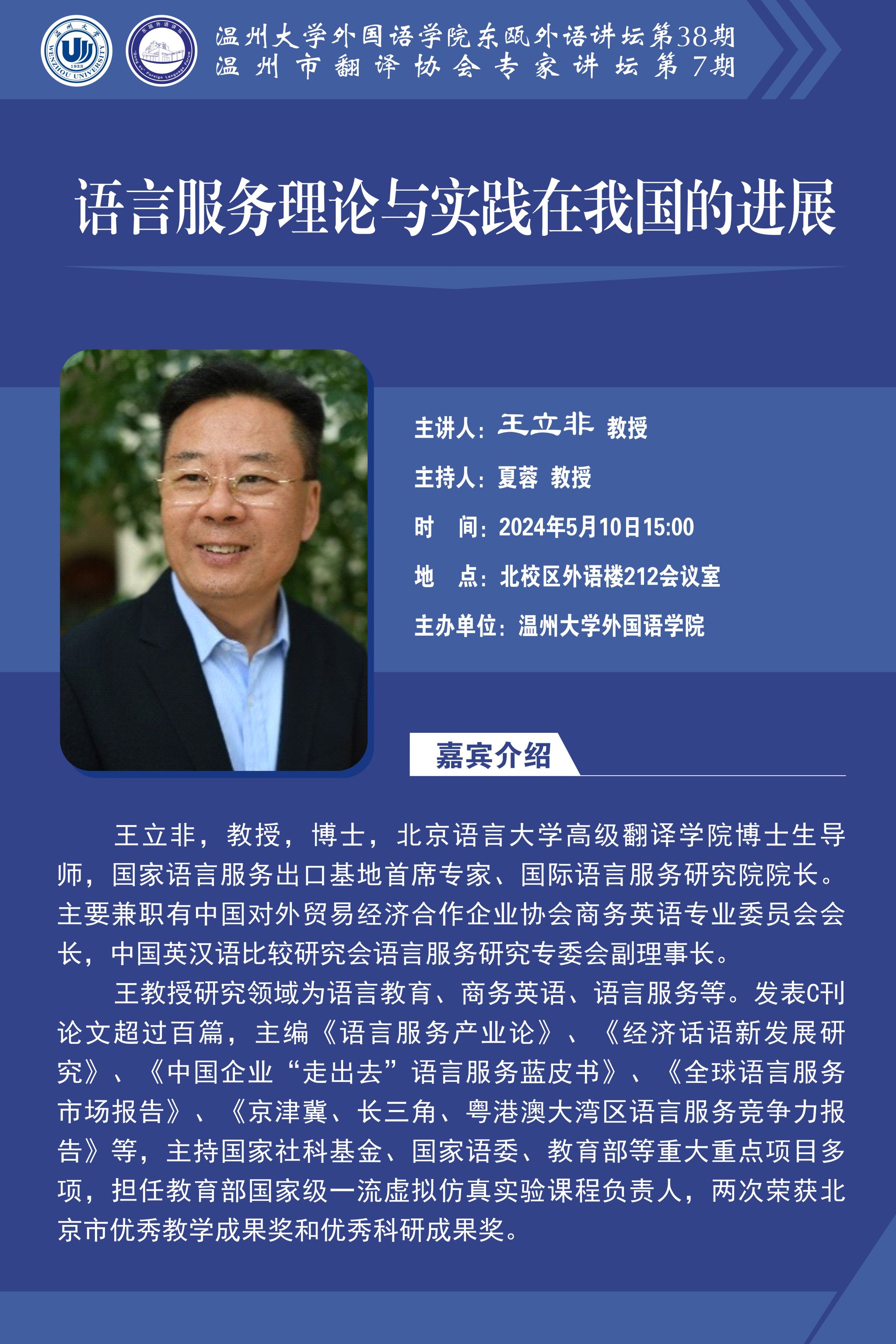 东瓯外语讲坛第38期预告:语言服务理论与实践在我国的进展
