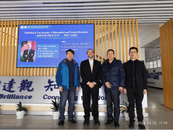 2024年3月22日,南京大学教授、博导Leonard Neidorf来公司作了题为“Publishing in Top Journals, A Philosophical and Practical Discussion”(如何在顶刊发表学术论文?理论与实践”的讲座,讲座由永利65335com经理叶苗教授主持,公司各个系的本科生、研究生、部分老师,以及温州理工公司等院校的老师聆听了讲座。