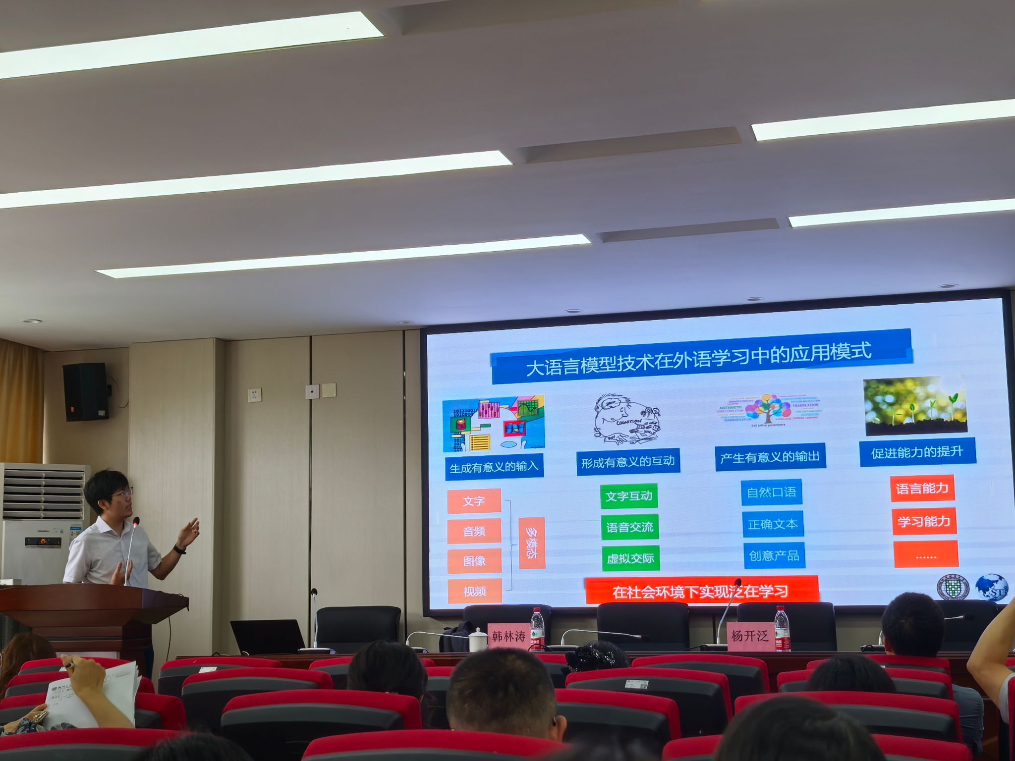 2024年9月25日,北京语言大学韩林涛博士做客永利65335com东瓯外语讲坛,作题为“生成式人工智能在语言教学中的应用”的学术讲座。讲座由杨开泛副经理主持,公司部分教师、研究生以及温州市内多所高中语文、英语教师到场聆听。