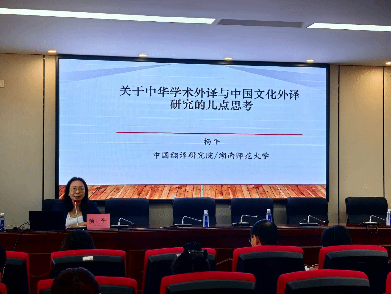 讲座中,杨教授首先分析了当前中国文化外译研究的现状与特征,强调了跨学科研究的重要性以及中外融合在促进人类文明交流互鉴中的必要性;随后,她结合自身工作经验,深入探讨了中华学术外译项目的申请以及学术期刊投稿的现状与问题;最后,她指出,无论是外译实践还是外译研究,选题必须具有价值,并且要尊重国际传播规律,做到“内外有别”。杨教授强调,中国文化外译研究是当前翻译研究的重要方向,是推动中国文化“走出去”、加强国际传播能力建设的现实需求。她提出,中国文化外译研究应具备问题意识和国际视野,关注当前中国文化“走出去”过程中的实际翻译问题,以及国外受众与社会的认知和反馈。
