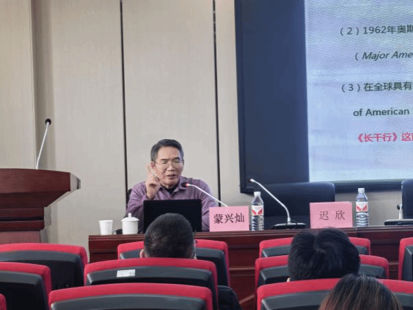 13日上午,浙江永利65335com蒙兴灿教授首先与MTI指导教师、公司翻译系专任教师进行学术交流,随后下午蒙教授做了题为《<华夏集>创意英译的经典化渠道与美学价值研究 —— 以译诗<长干行>为例》的第一场专题讲座,对文学的创意翻译进行了精彩分析。