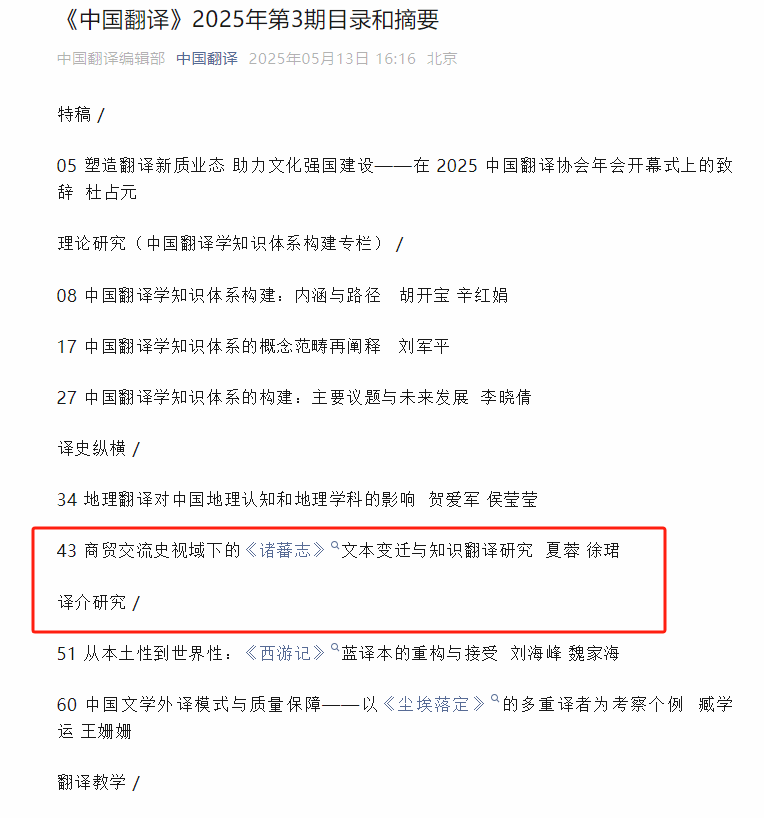 科研动态|公司夏蓉教授在《中国翻译》发表学术论文