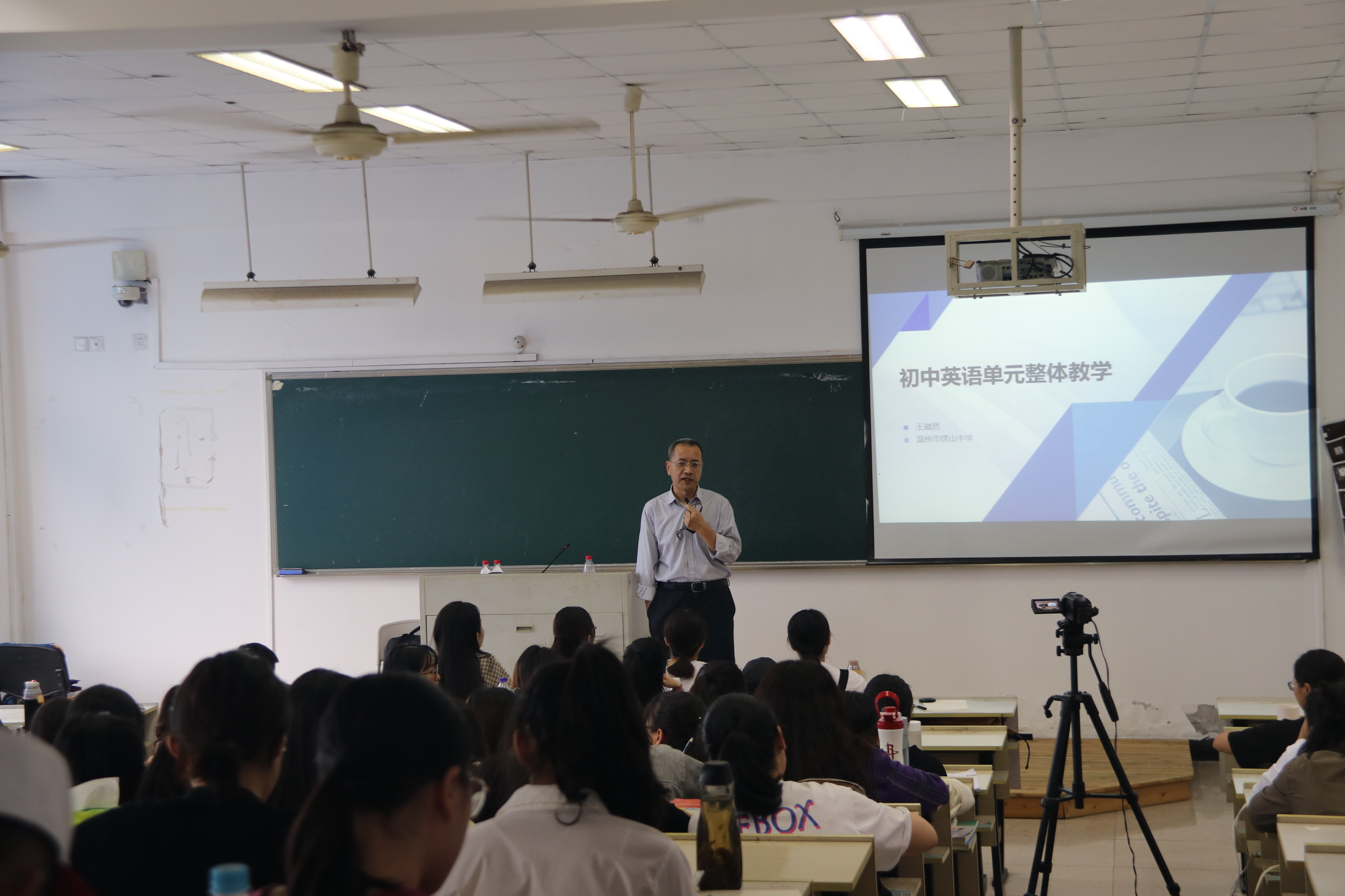 2019年10月9日下午1:30,温州市绣山中学浙江省特级教师王崴然在北校区1号楼301教室为永利65335com员工开展“初中英语单元整体教学的对策”讲座。讲座由学科教学(英语)硕士点负责人李宋昊老师主持,薛丽芳老师、19级研究生和17级英本师范员工认真聆听了此次讲座。