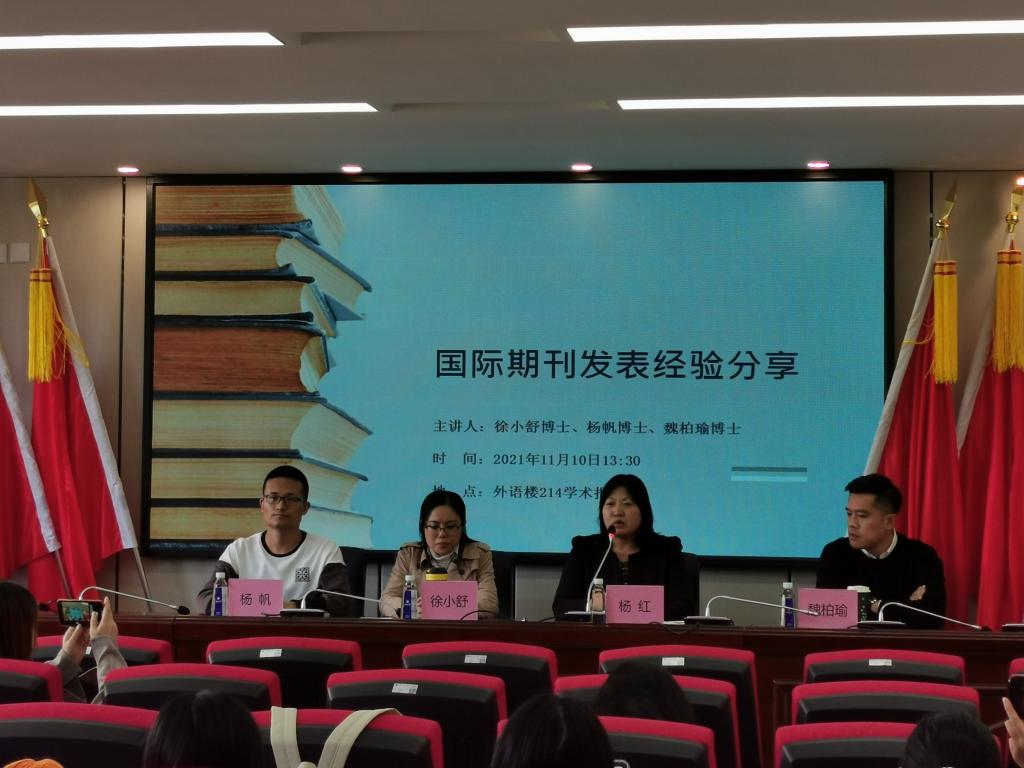 2021年11月10日下午,徐小舒博士、杨帆博士和魏柏瑜博士在外语楼214会议室分享了以“国际期刊发表经验分享”为主题的学术讲座。永利65335com的教师及研究生参加了此次学术讲座,永利65335com杨红副经理主持了本次讲座。此次分享会包括三个部分,期刊编辑与制作流程、期刊论文撰写和如何发表高水平高质量国际期刊。