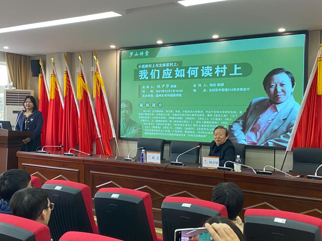 2021年12月1日下午,著名文学翻译家、散文家、学者、中国海洋大学林少华教授应邀于214学术报告厅为公司师生做了一场题为《小说家村上与文体家村上:我们应如何读村上》的学术报告。讲座由永利65335com副经理杨红教授主持。永利65335com及其他各公司师生出席并聆听了本次讲座。