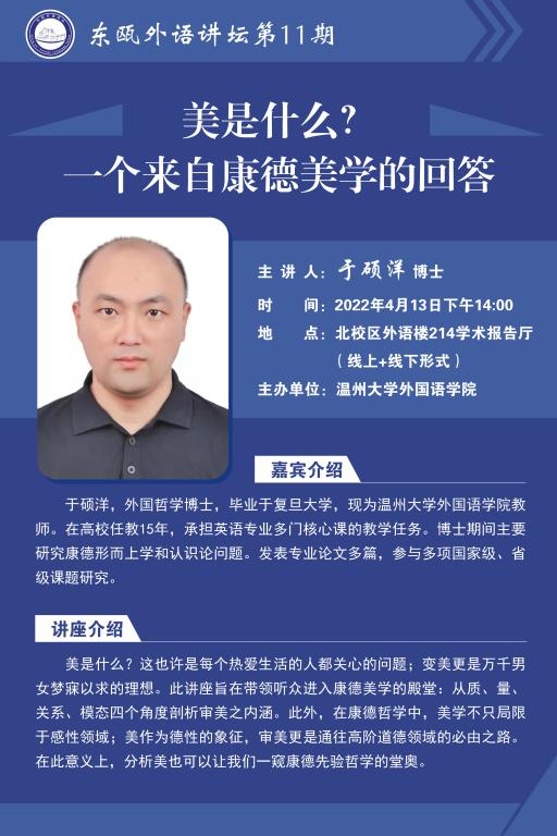 东瓯外语讲坛第11期预告:美是什么?一个来自康德美学的回答