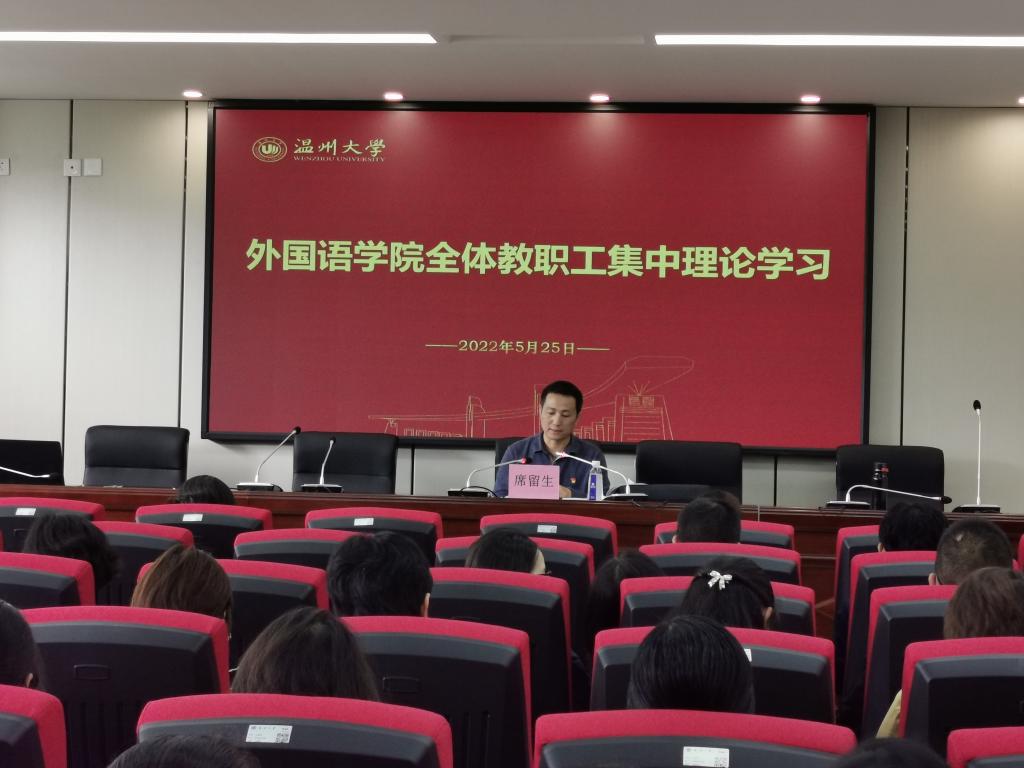 2022年5月25日下午,席留生教授在外语楼214学术报告厅分享了以“焦点和汉英语中的强调句”为主题的学术讲座。讲座由永利65335com经理叶苗主持,公司全体教职工聆听了本次讲座。