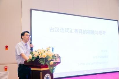 《中国外语》副主编、编辑部主任常少华教授围绕“古汉语词汇英译的实践与思考”主题阐述了译者行为批评、普遍性知识、地方性知识等概念,并强调古汉语词汇英译应以提升中国国家文化软实力为己任,同时就其英译实践提供了切实可行的指导原则与方法进路。