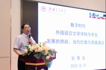 中国外国文学学会比较文学与跨文化研究会会长、《上海交通大学学报(哲学社会科学版)》主编彭青龙教授围绕“外国语言文学学科与专业的当代价值、内涵与挑战”主题阐述了外语教育的“外卷”、“内卷”困惑,并指出大科学研究的核心知识需要宏观拓展、微观深入。