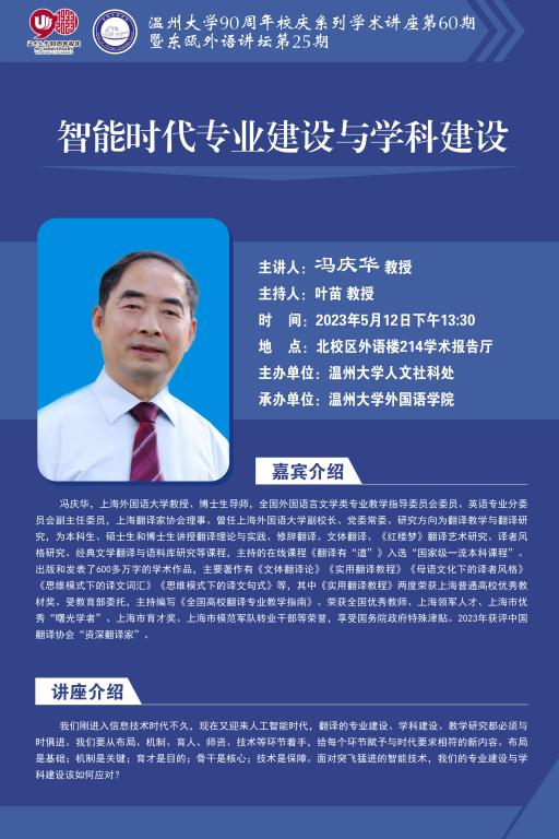 东瓯外语讲坛第25期预告: 智能时代专业建设与团队建设