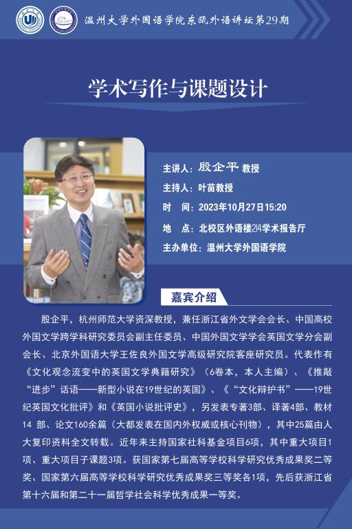 东瓯外语讲坛第29期预告:学术写作与课题设计