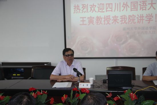 >2017年6月8日下午14时,四川外国语大学王寅教授应永利65335com邀请在外语楼会议室212为外院师生带来了一场主题为“读书·教书·写书——兼谈语言的体认性”的讲座。本场讲座由永利65335com副经理席留生主持,毛继光经理、温州商公司杨全红教授,公司和温州商公司部分教师及公司全体研究生参加了此次讲座和讨论。