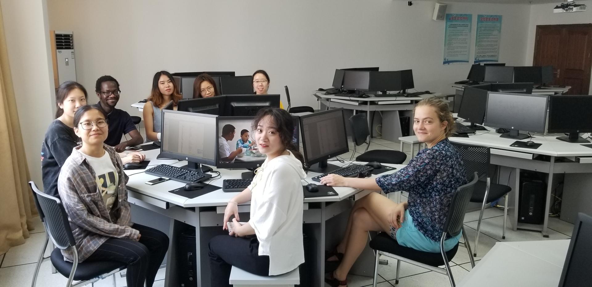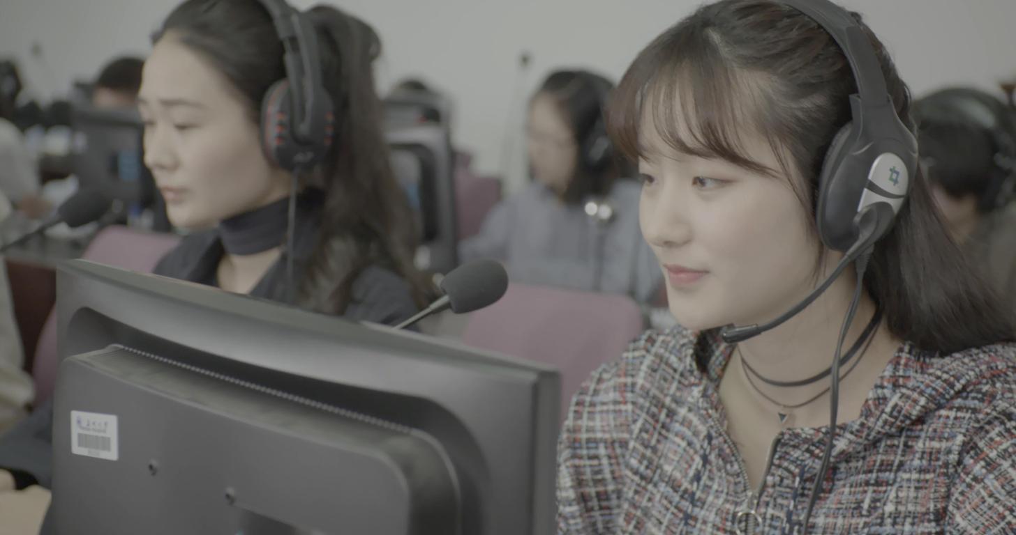 图为:翻译专业员工在智能云翻译实验室完成“寻味文成”视频翻译项目