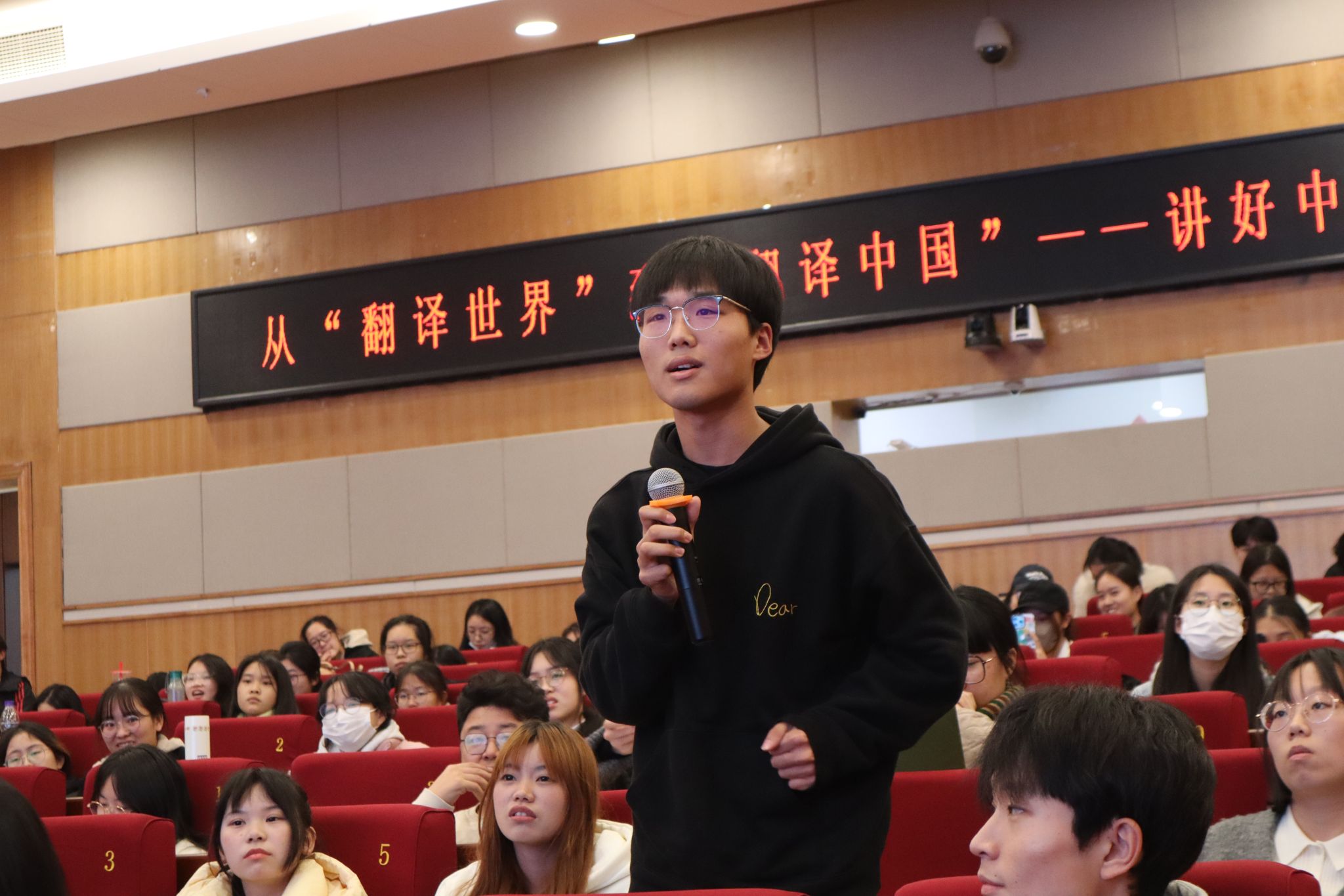 黄译审长期从事对外出版和国际传播工作,具有丰富的党政文献和领导人讲话的翻译和译文审定经验。在本次讲座中,他结合真实、具体的翻译实践案例,针对翻译陷阱,诠释了修订后译文的合理性和得体性。黄译审的讲座深入浅出,让在场师生深受启发、受益匪浅。在讲座的互动环节,黄译审欣然接受了现场师生的提问,并给出充满智慧的回答,现场互动交流氛围浓厚。最后,叶苗经理对此次讲座进行了总结,并对黄译审与其精彩的讲座表达了崇高的敬意和衷心的感谢。