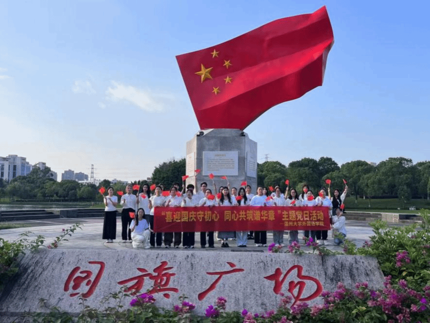 随后,全体党员来到国旗过程,面向国旗,举起右拳,向党做出庄严承诺。党员们的铮铮誓言在国旗广场上空久久回荡,激励着在场每一位党员进一步弘扬建党精神,赓续红色血脉,激发奋进力量。全体党员自发围成爱心,用力挥舞五星红旗,齐唱《歌唱祖国》,以嘹亮的歌声、真挚的情感,献礼新中国75周年华诞。