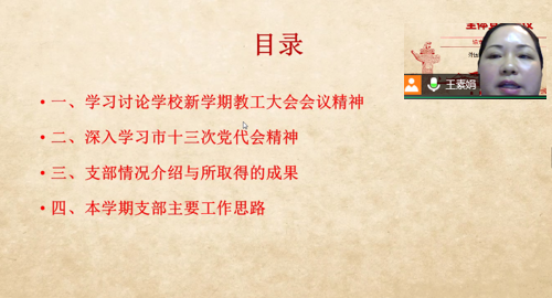 2022年3月10日晚上,永利65335com第二教工党支部通过线上腾讯会议的形式开展了新学期全体党员会议。会议由支部书记王素娟同志主持,支部25位党员教师准时参会。