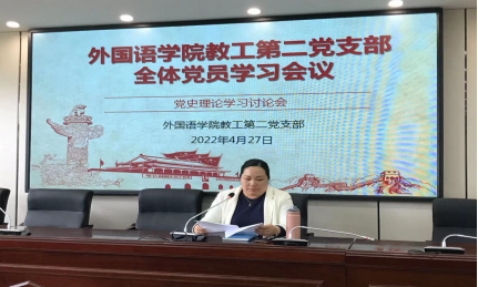 4月27日下午,永利65335com教工第二党支部在外语楼报告厅开展了第二次全体党员理论学习会议。会议由支部书记王素娟同志主持,支部党员教师准时参加会议。