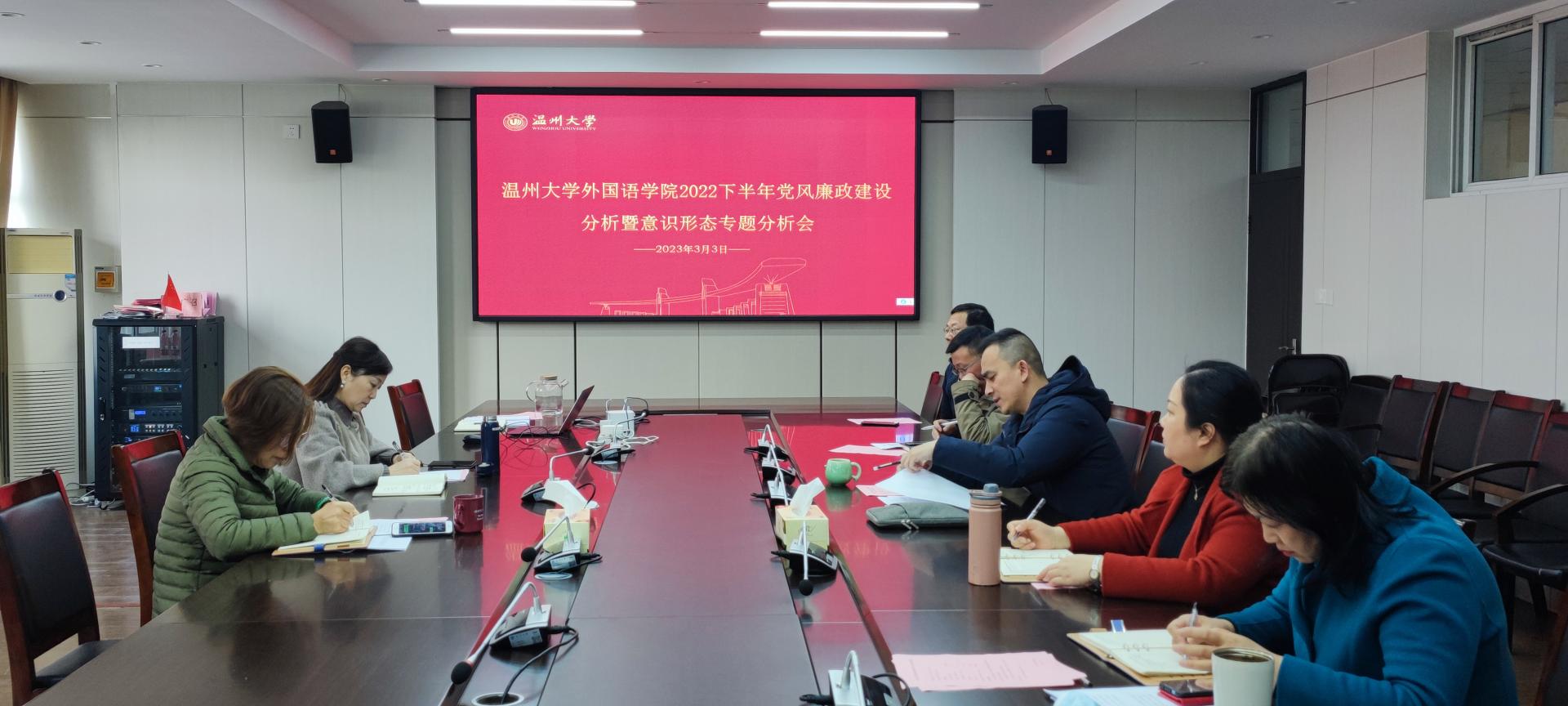 3月3日下午,永利65335com公司在外语楼212会议室召开2022年度下半年党风廉政建设和意识形态工作析会。公司党委委员参加会议。会议由公司党委书记杨丽君老师主持。