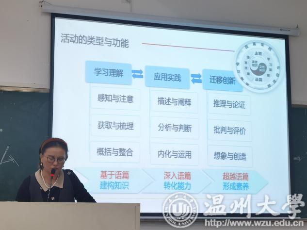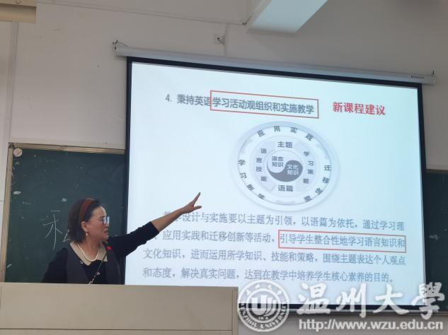 2022年11月2日下午两点,温州市首届名师金浪老师为20级英语(师范)师范专业员工开展了“基于教、学、评一致性的听说课设计与实施”讲座。