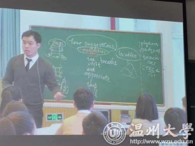 而后,老师同我们分享了一节优质公开课——Unit1《Writing a travel guide》。这节课的合作环节中,授课老师在活动前的准备工作,在活动中对员工的观察、调试和及时的帮助提问以及在活动后引导员工回答对我们来说极具借鉴意义,值得我们反复思考揣摩。这些活动既能够让员工去加深对主题意义的理解,又能促进员工运用所学知识技能、方法策略和思想观念等。最后,金浪老师为大家总结了其中的几点精彩手法以及亮点,包括如何引导员工读图以此来帮助员工培养方位感解决真实的问题,如何引导员工学会自评与互评,如何布置小组大活动等。