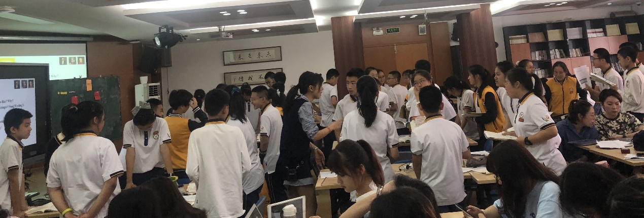 金浪老师也就今天的示范课进行了针对性地点评,进一步的阐述了“以用致学”的教学理念,并分享了对于教学风格、合作学习、“生·动课堂”的体会与经验,指出不同教学风格的老师间应该互相借鉴融通,取长补短,保留性格特色的同时,要将课“踩实”,不能脱离教学实质。金老师深刻的见解令现场师生备受感悟。紧接着杨凡虹老师也对十二中先锋创新的“生·动课堂”教学理念及运用进行了阐释,生·动课堂一语双关,既指让员工动起来的课堂,也寓意课堂生动活泼。两位老师的分享给同学们很大的启发,同学们也现场感受到了生动课堂与合作教学的教学效果,学到了许多具有深刻意义的教学方法与经验。