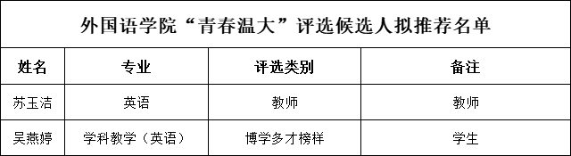 根据《关于“青春温大”·2022年度榜样人物评选活动的通知》要求,经过个人申报和员工工作委员会评议投票决定,现将公司“青春温大”·2022年度榜样人物拟推荐参加校级评审名单进行公示: