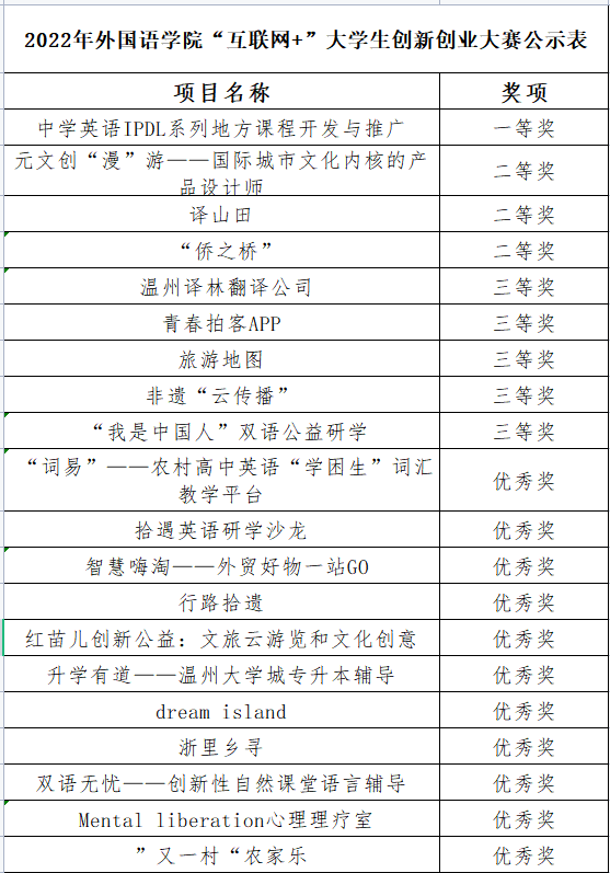 关于2022年永利65335com“互联网+”老员工创新创业大赛院赛结果的公示