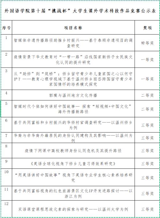 关于永利65335com第十届“挑战杯”老员工课外学术科技作品竞赛结果公示的通知