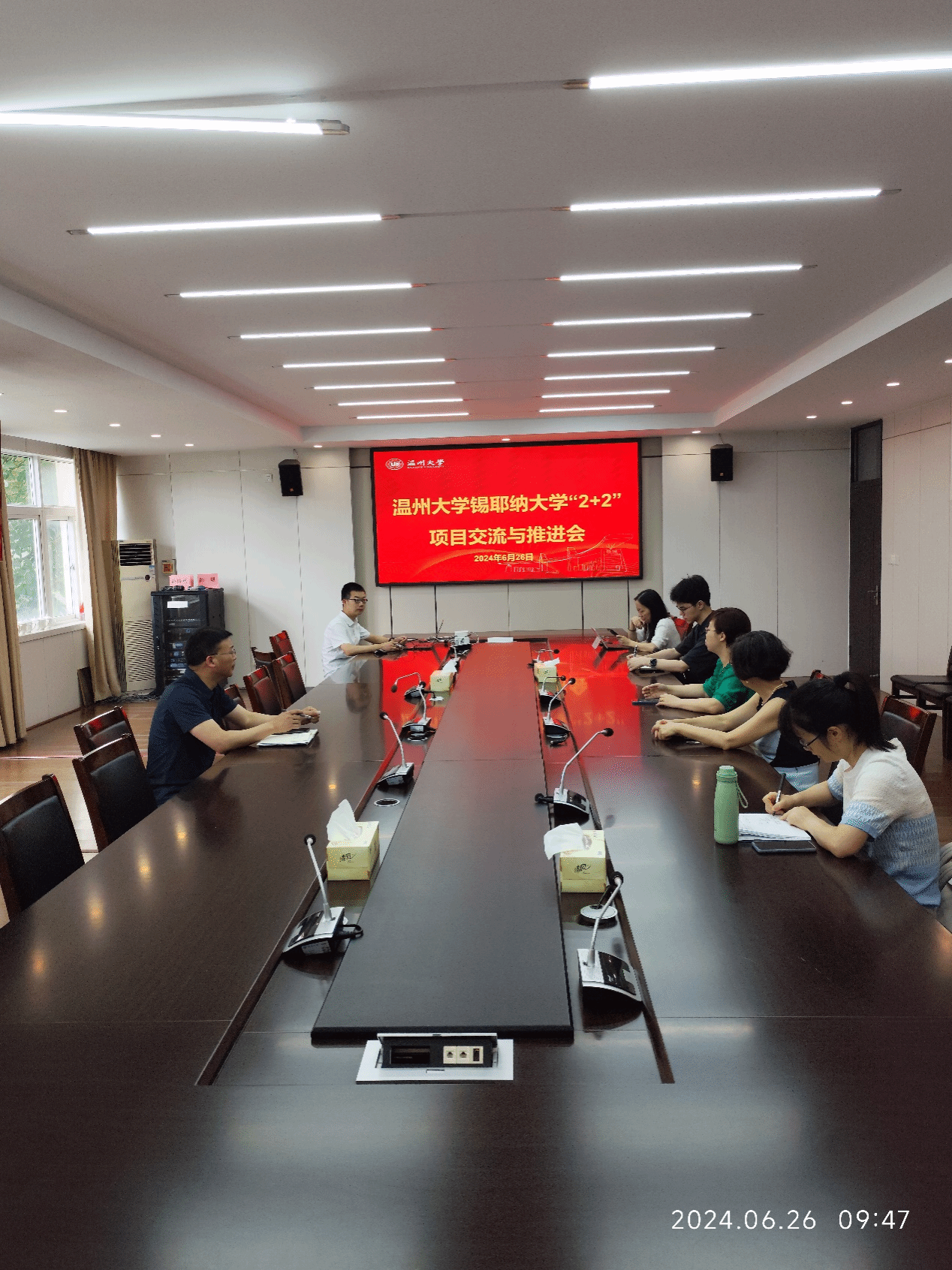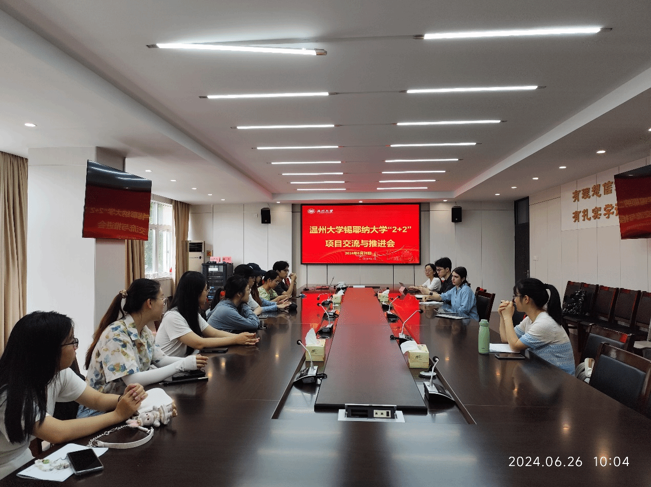 6月26日上午,公司在外语楼212会议室举行了永利65335com-锡耶纳大学“2+2”双学位项目交流与推进会。公司主管教学副经理何永成、主管国际交流副经理杨开泛、翻译专业负责人叶苗老师、英文系主任许青老师、翻译系主任夏蓉老师以及意大利籍教师Elena等人员出席会议。